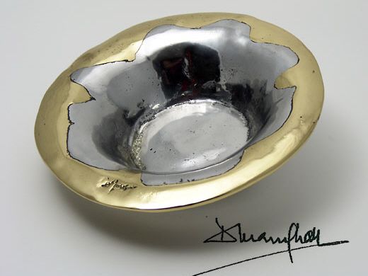 Weich geformte Süssigkeitenschale "Flower" aus Aluminium und Messing.