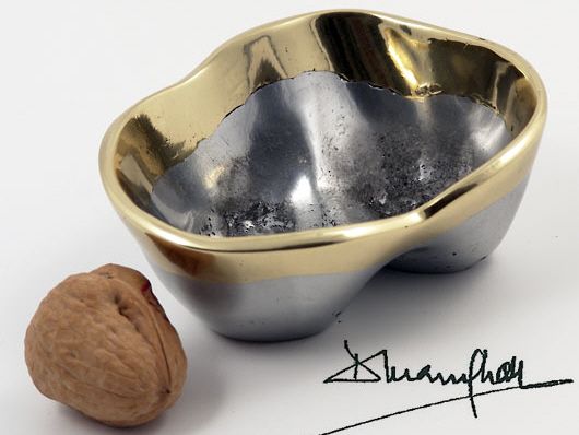 Praktische kleine nierenförmige Obstschale aus Aluminium und Messing.