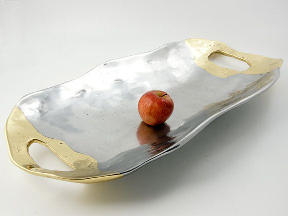 Große, lange Obstschale aus Aluminium und Messing
